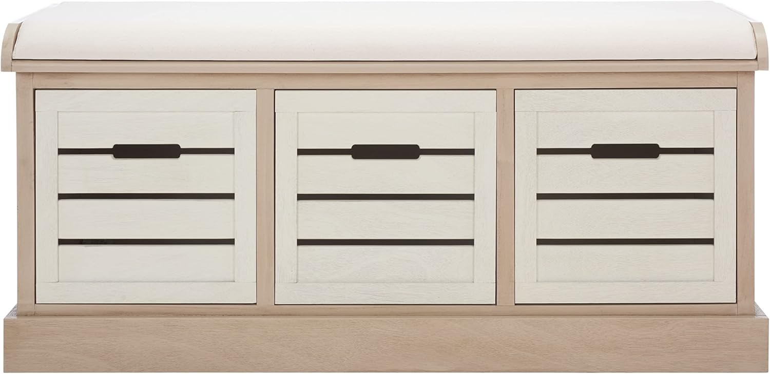 Storage meets style in this Briar Cushion Bench. Perfect for a busy entryway or farmhouse chic bedroom, Briar’s country charm is highlighted in its décor smart black frame, while its greige basket drawers easily hide away life’s messes or store everyday essentials.